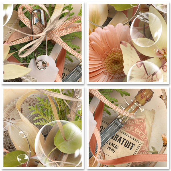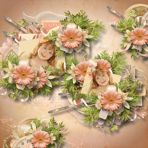 - 40 elements (paintbrush, pen, butterfly, ribbons, flowers, frames, bows, envelope, foliages, postcard, stamp, violin…) in png files