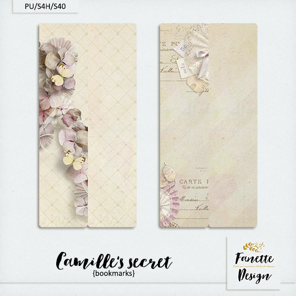 This pack contains 4 bookmarks created from Camille’s secret {full kit}