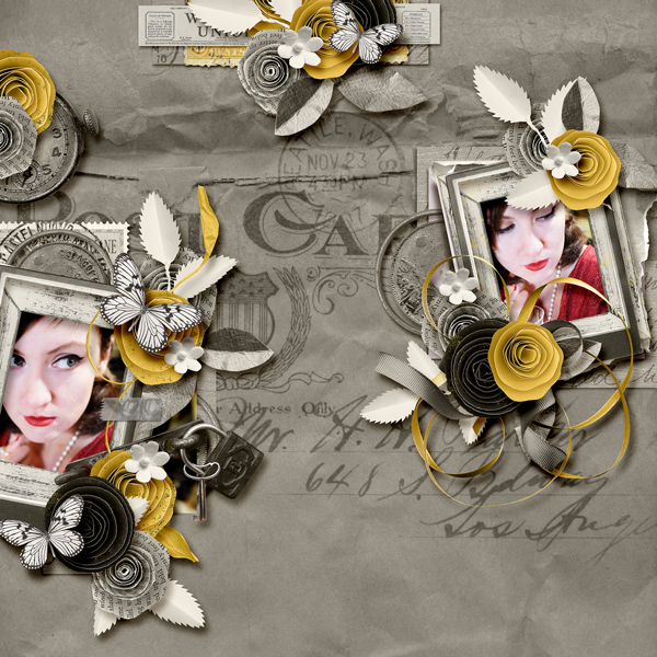 - 61 unique elements (flowers, ribbons, stamps, frames, postcards, paper foliages, safety pins, beads, camera, cards…) in png files