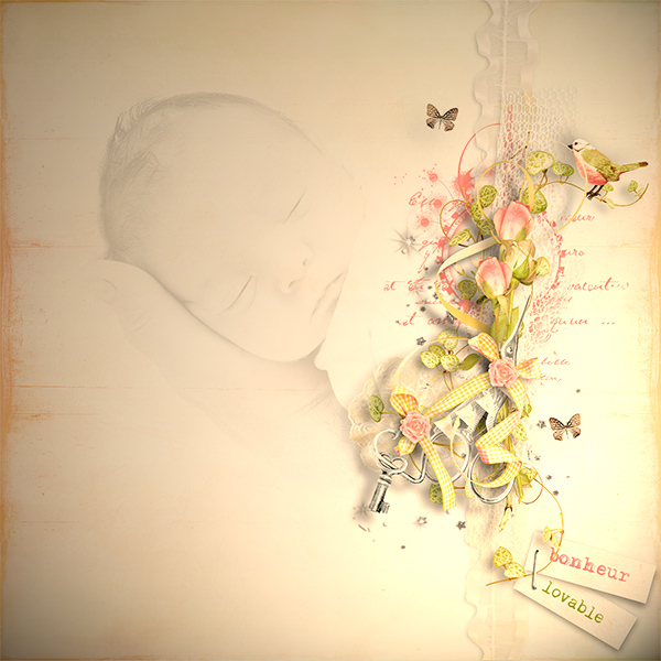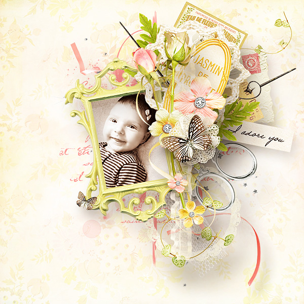 - 62 elements (Ribbons, laces, staple, thimble, tickets, flowers, brushes, crochets butterflies, foliages…) in png files