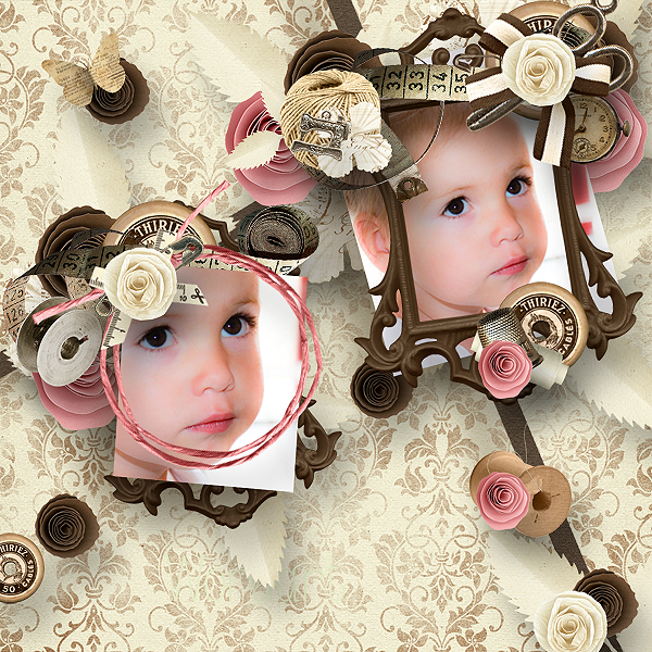 • 82 elements (flowers, ribbons, laces, frames, threads, scissors, safety pins, stitches, needle, buttons, bows, ads…) in png files